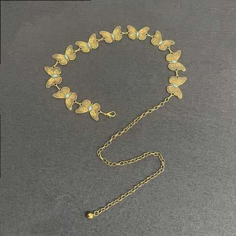 Haute Vintage Femmes Taille Chaîne Métal Papillon Chaîne Décoration Ceinture